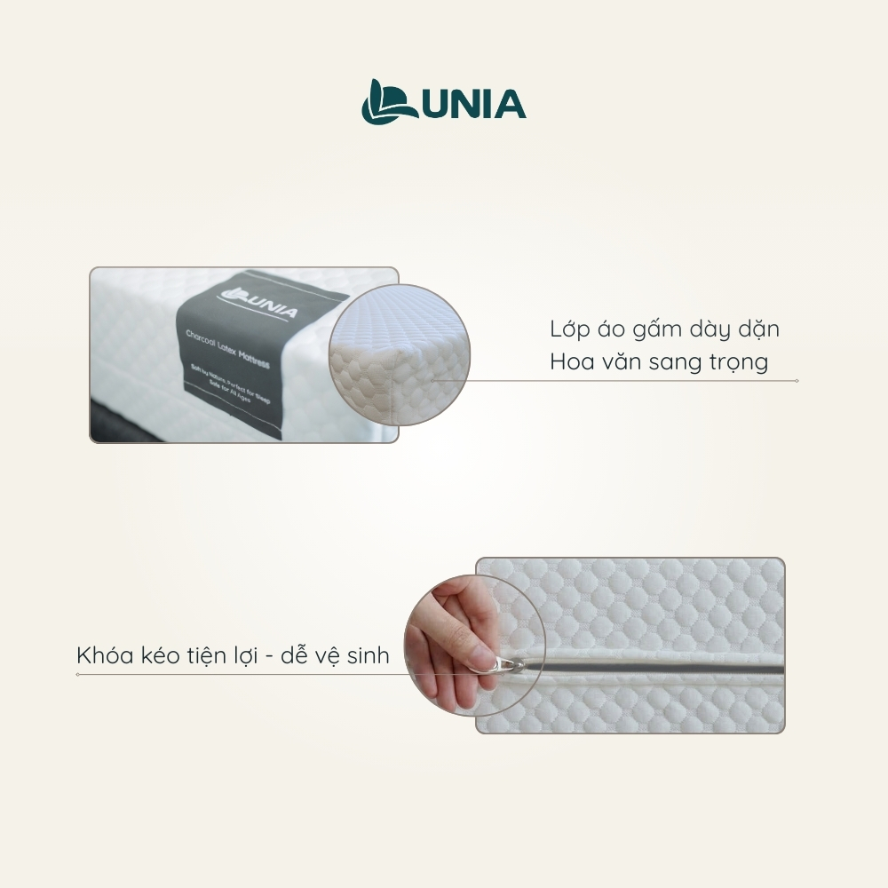 Nệm cao su thiên nhiên Than Hoạt Tính Lunia là dòng nệm cao cấp giá phải chăng, được sản xuất từ mủ cây cao su thiên nhiên chọn lọc kỹ càng, kết hợp cùng than hoạt tính – vật liệu nổi tiếng với khả năng kháng khuẩn và khử mùi hiệu quả. Sự kết hợp này tạo nên một tấm nệm đàn hồi tối ưu, êm ái, bền bỉ, đồng thời đảm bảo không gian ngủ luôn sạch sẽ, thoáng mát và an toàn cho sức khỏe.